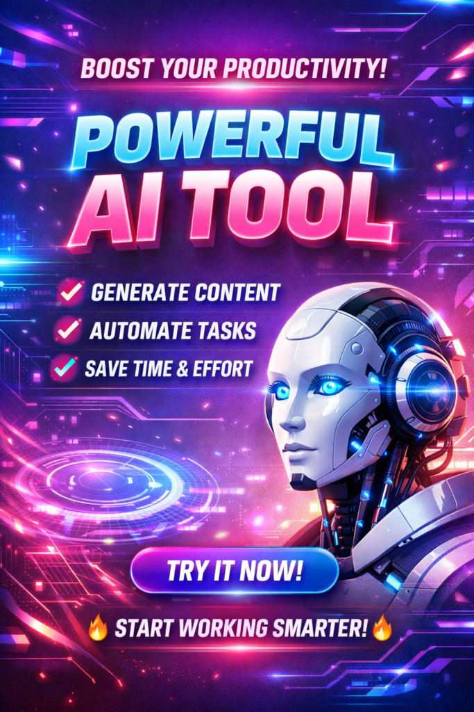 Another Example : Create an Instagram-style image promoting an AI tool with bold typography, gradient background, and a futuristic tech theme.
